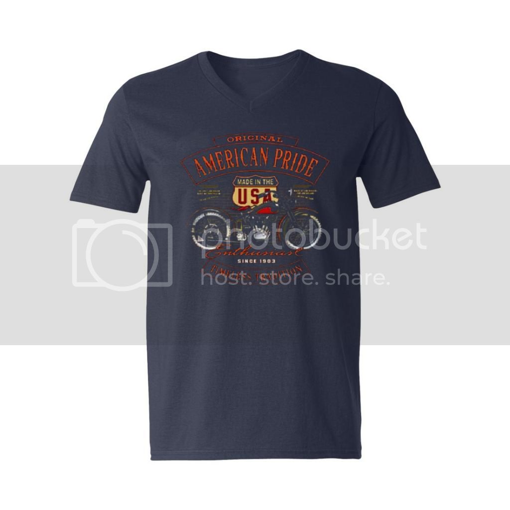 American Biker Rider Route 66 Men's V-Neck Shirt Highway Motorcycle Tee
